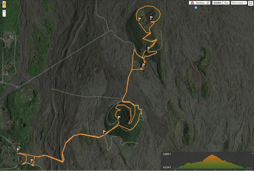 E’ solo grazie al Gps che sono riuscito a seguire il “sentiero” che sale tra i i fiumi di lava solidificata, il percorso non è minimamente tracciato e l’ho scovato tra gli archivi di Wikiloc.